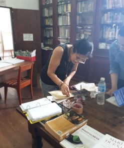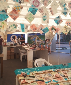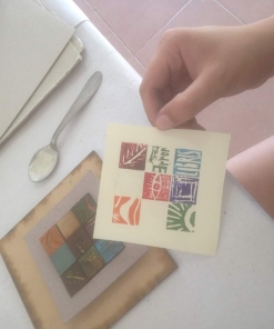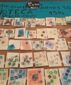 Este proyecto tiene como objetivo establecer un diálogo con las redes de cultura comunitarias que se forman alrededor de las bibliotecas populares-barriales, escuelas y espacios independientes. Estos lugares son fundamentales ya que permiten el acceso a los bienes culturales a través de intercambios justos y solidarios. Desde esta perspectiva, nuestra propuesta busca cuestionar los modos tradicionales de hacer y relacionarse con el arte y la cultura, y reflexionar sobre el lugar del diálogo en nuestra propia producción artística. Tomamos como punto de partida la tradición del exlibris, que ha estado ligada a los orígenes del libro y la imprenta, pero cuestionamos su enfoque de propiedad privada. En cambio, lo recreamos como una imagen y documento de los patrimonios comunitarios que se generan en estos espacios. Nuestra propuesta se basa en los fundamentos del Arte Relacional, con el objetivo de fomentar un intercambio equitativo, plural y horizontal. Buscamos sumar experiencias, difundir el lenguaje gráfico en su especificidad y crear una obra colectiva abierta. Como acto de federalismo, nos proponemos llegar a las 23 provincias argentinas, ya sea trabajando en pequeños pueblos o grandes ciudades, con el fin de fortalecer las redes existentes de intercambio cultural o crear nuevas. Es importante destacar que nuestro proyecto ha obtenido la declaración de interés municipal y provincial en el año 2019, en el contexto de la residencia para artistas en la Biblioteca «La Lechuza» en Chajarí, provincia de Entre Ríos, Argentina. En los encuentros se trabaja en modalidad de taller, luego de haber conversado sobre el exlibris y las realidades de los distintos espacios. Se comienza a tallar las matrices: pequeños módulos, tacos de madera, 2cm x 2cm, 4cm x 4cm, los cuales, inspirados en los tipos móviles, encastran en marcos que sirven como soporte de composición. Cada persona realiza un solo módulo, aunque necesita más de uno para crear la imagen final. A la hora de la estampa el proceso será seleccionar los módulos, componer la imagen, y, a su vez, podrá darle a cada módulo un tratamiento de color, con la posibilidad de que surja una obra policromática. Al estampar esta matriz móvil, se dará una operación de recomposición permanente, donde la imagen generada a partir de cada encuentro se convierte en un desafío creativo, compositivo y discursivo, en un exlibris vivo, un exlibris mutante. En simultáneo a este proceso colectivo, que denomino “viaje gráfico”, se desarrolla una obra personal, que consistirá en la estampa de “estados del viaje”, es decir, una obra para cada etapa del recorrido, donde se incluyen las matrices obtenidas hasta el momento. Obra pensada como un “mapa gráfico” que da cuenta de cómo, con el paso del tiempo, crecen y se suman nuevas imágenes, proceso que significa, en lo personal, un momento de reflexión, contemplación y producción sobre lo experimentado, una forma de registrar mi percepción/sensación de estas relaciones. También acompaña el proceso un “cuaderno de bitácora”, como objeto aparte y complementario, intervenido por cada uno de los participantes. En él se incluyen nombres, dibujos, edades, mensajes y lugares de residencia. Allí aparece aquello que funda la obra, su sentido: la experiencia, el “viaje por el tiempo colectivo”.
